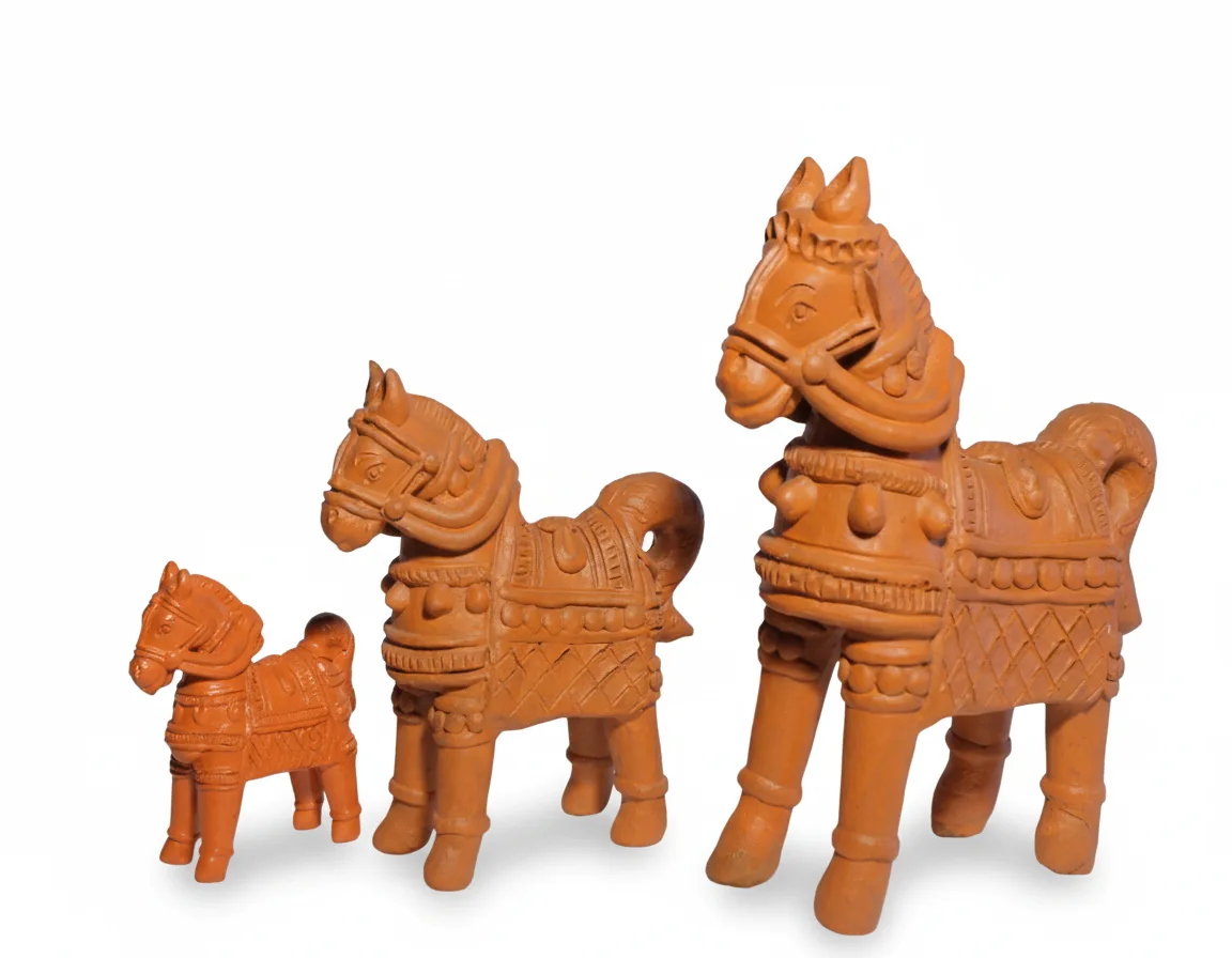 Short Description: Bring the heritage of West Bengal’s “Bankura” art into your home. These handcrafted terracotta horses are symbols of sacrifice, devotion, and elegance. Made from 100% natural clay and kiln-fired to a rich earthy hue, they are available in three distinct sizes to suit any corner of your space.