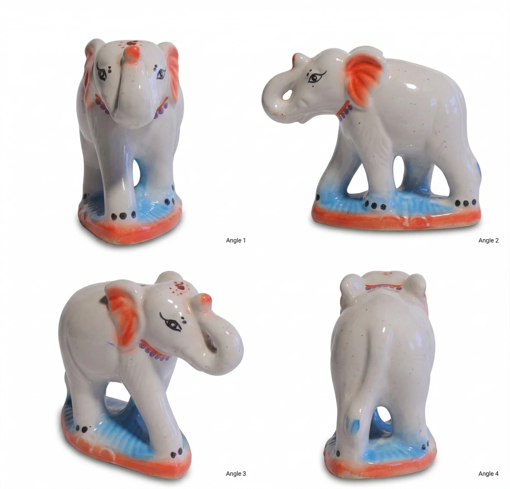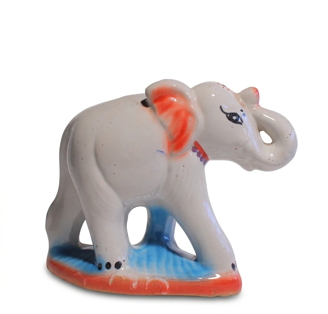 Celebrate timeless craftsmanship with our Hand-Painted White Ceramic Elephant. This delightful figurine is finished in a smooth, glossy white glaze that serves as a canvas for vibrant, artisanal details. The ears are kissed with a soft red gradient, while the base features a textured blue wash that grounds the piece beautifully.
