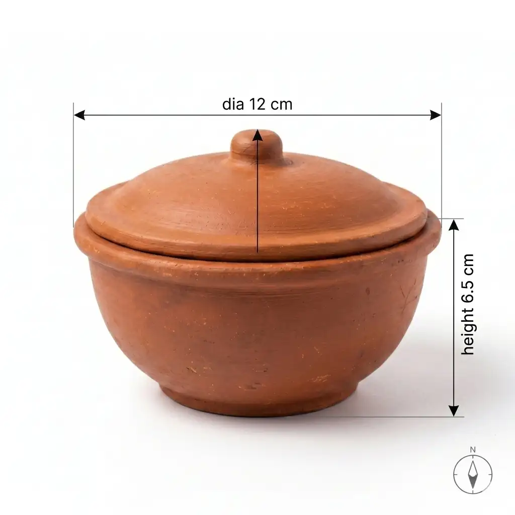 Handcrafted Terracotta Clay Chatti with Lid – Eco-Friendly Cooking & Serving Pot (12cm Dia)