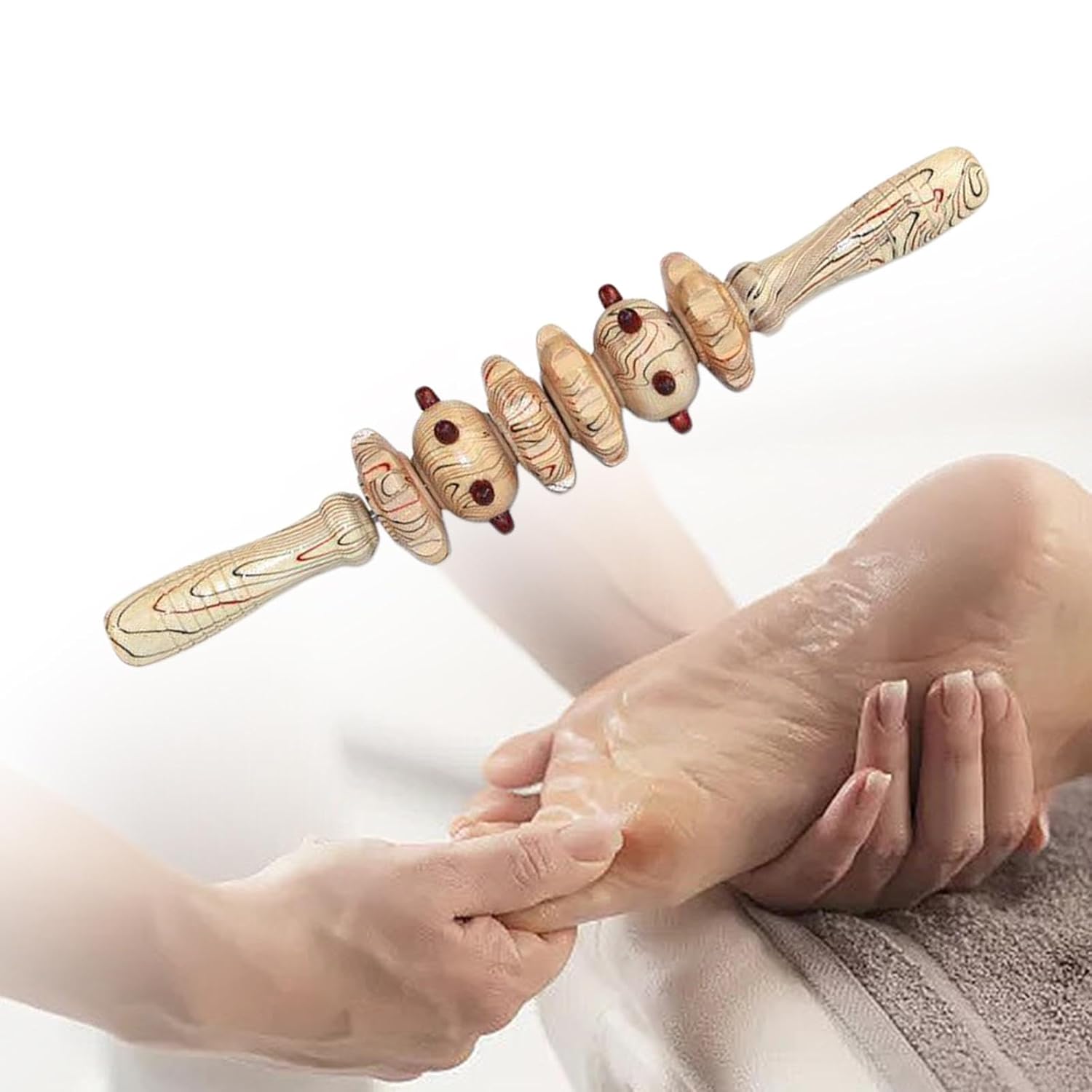 Experience the ancient art of Maderotherapy at home with our professional-grade 5-wheel wooden roller. Designed specifically to mimic hand-kneading techniques, this tool provides deep-tissue stimulation that traditional plastic massagers cannot match. Its five independently rotating wheels allow it to glide effortlessly over the contours of your stomach, back, and legs, targeting stubborn fat and knots with precision.