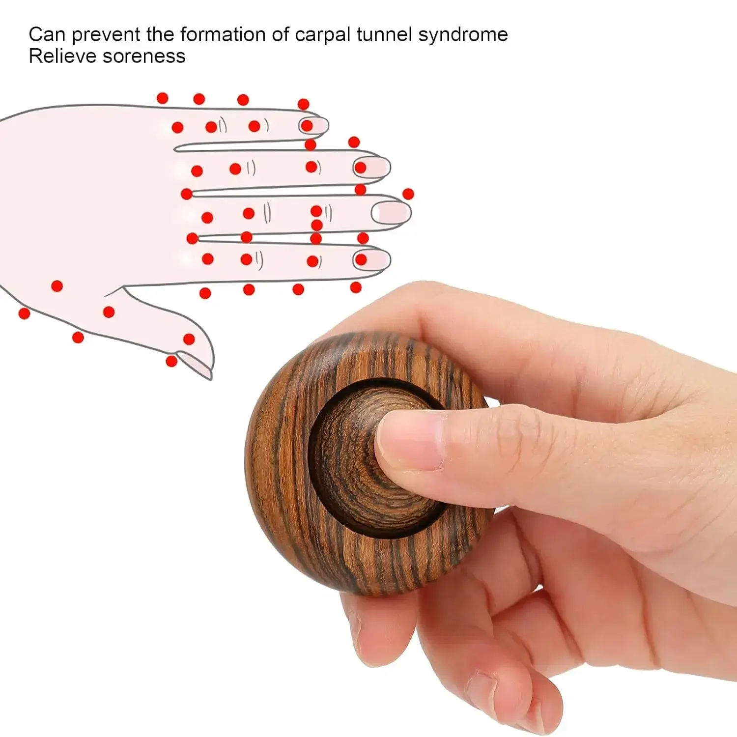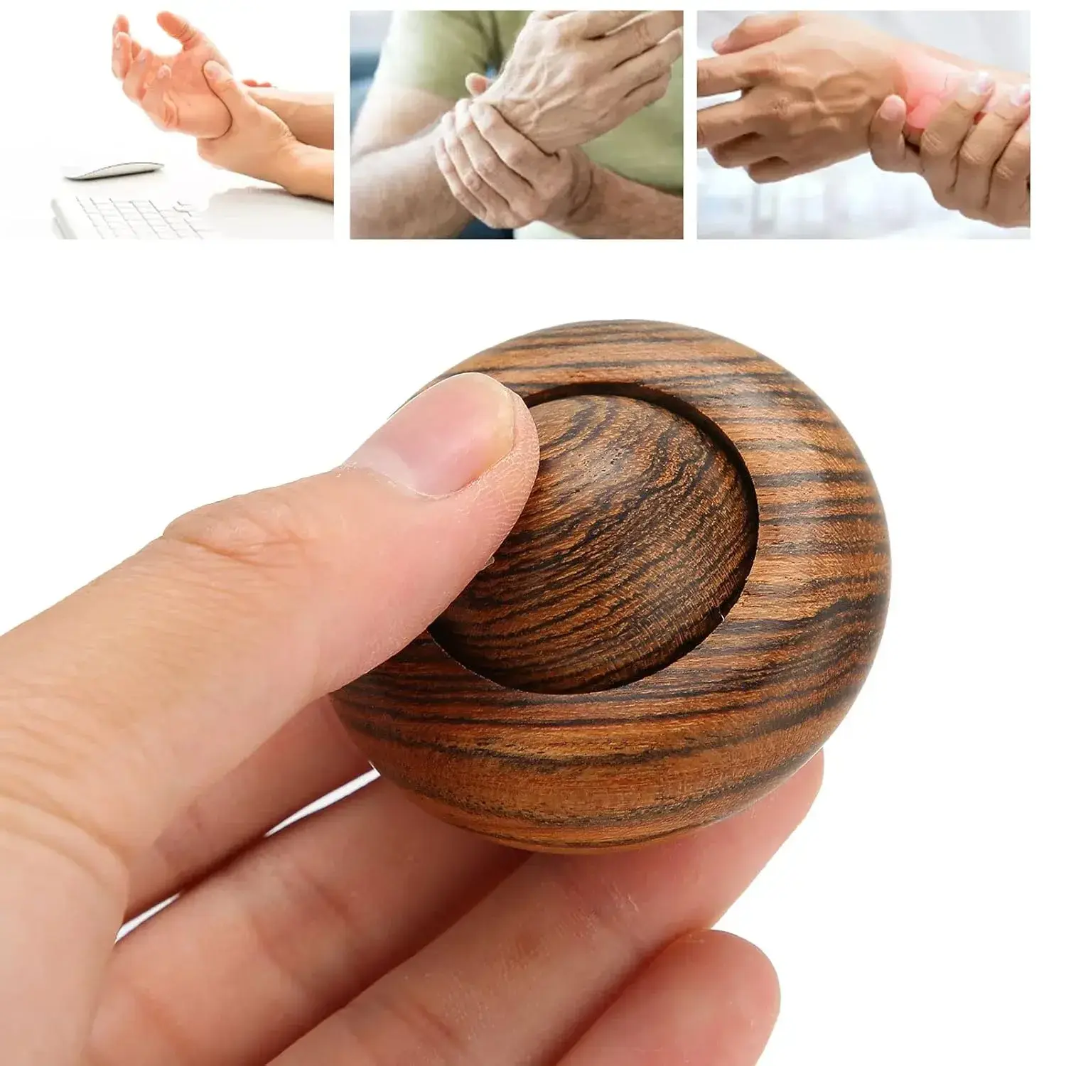 Therapy and Strength in Your Palm: The unique, innovative design features a central, smooth wooden sphere that rotates freely within a comfortable outer ring. This dynamic action allows you to gently yet effectively massage your palm, fingers, and wrist. Consistent use is proven to exercise the flexibility of the fingers and significantly enhance the grasping power. It’s an invaluable tool for rehabilitation, helping to maintain joint mobility and offering preventative care against conditions like Carpal Tunnel Syndrome and general muscle fatigue.