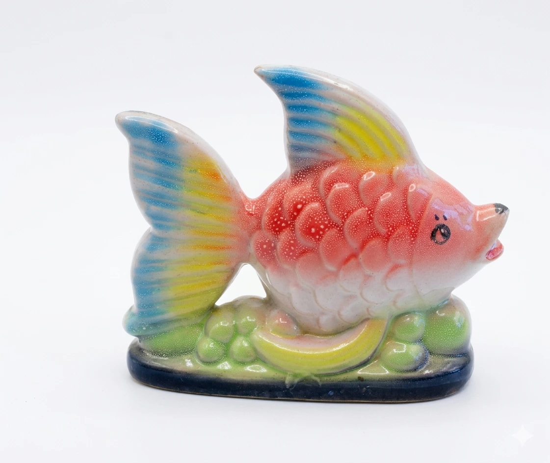 Vibrant Tropical Rainbow Ceramic Fish Showpiece – Hand-Painted Coral & Blue